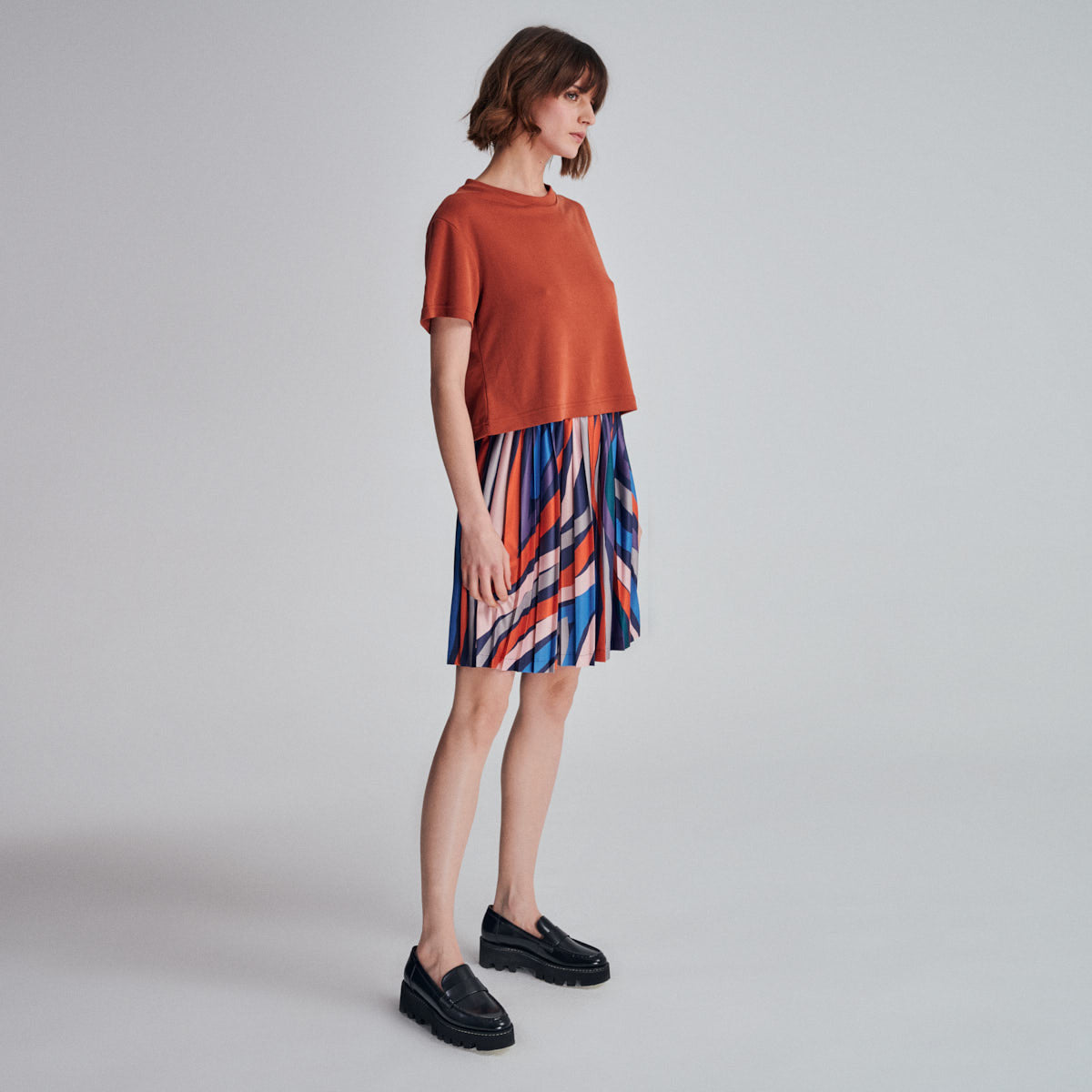 The pleats are made of 100% recycled polyester fabric used in production professional cycling clothes . The fabric has a hydrophilic finish, which wicks away moisture well, ensuring thermal comfort and dries quickly.