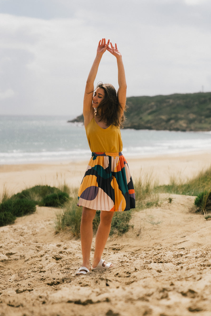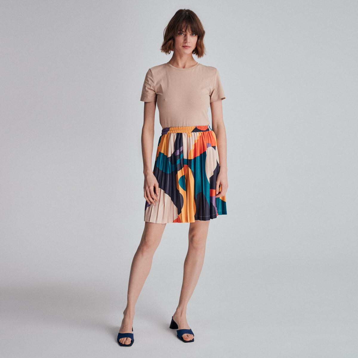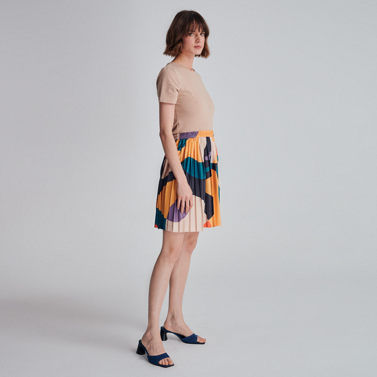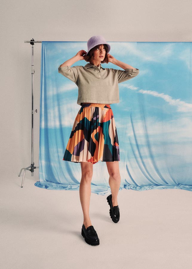 Pleated trousers with extremely wide and loose legs that form a skirt.