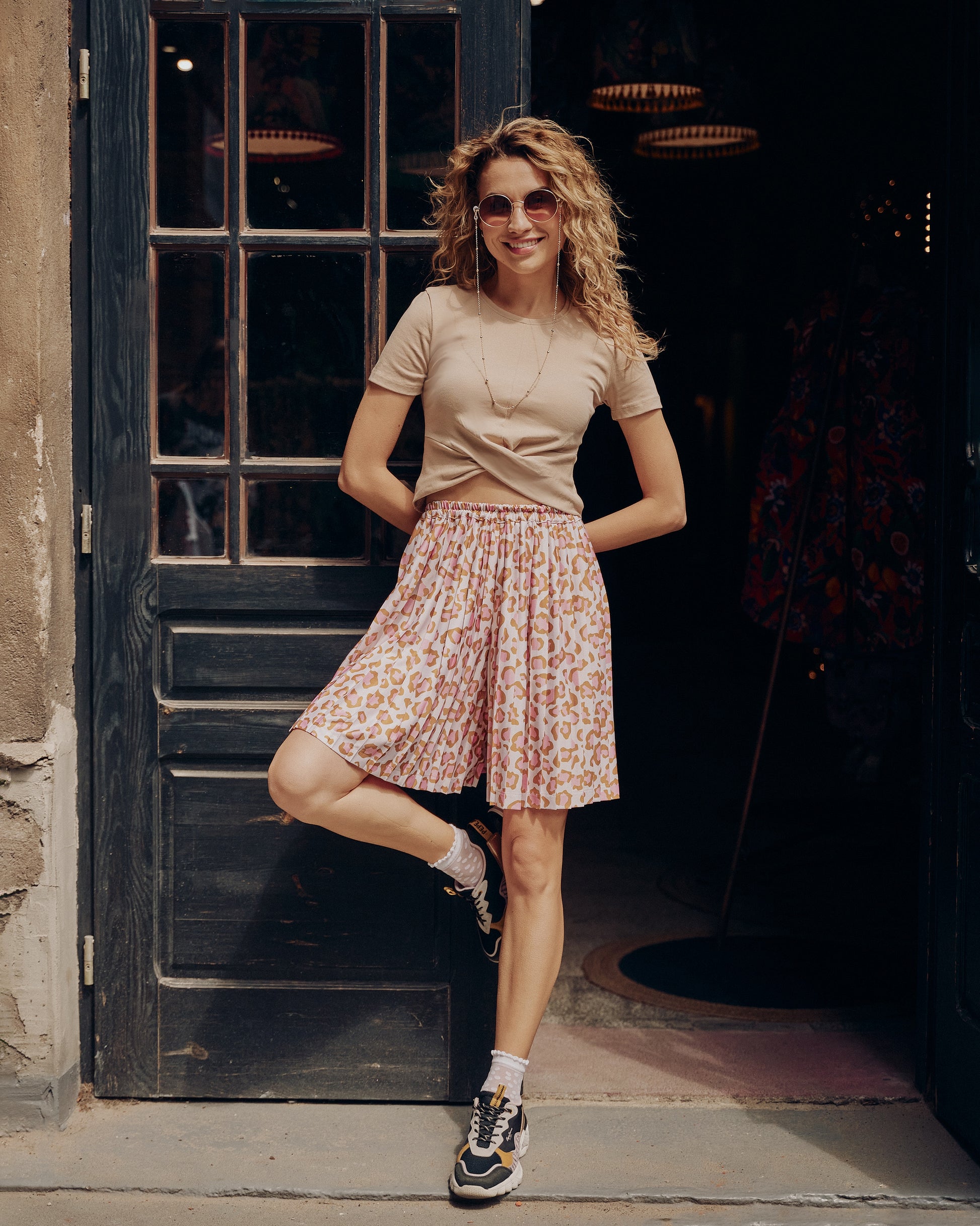 Pleated trousers with extremely wide and loose legs that form a skirt.
