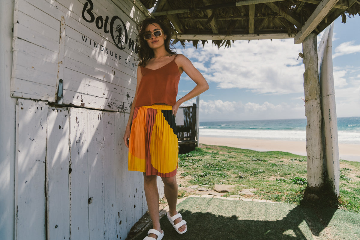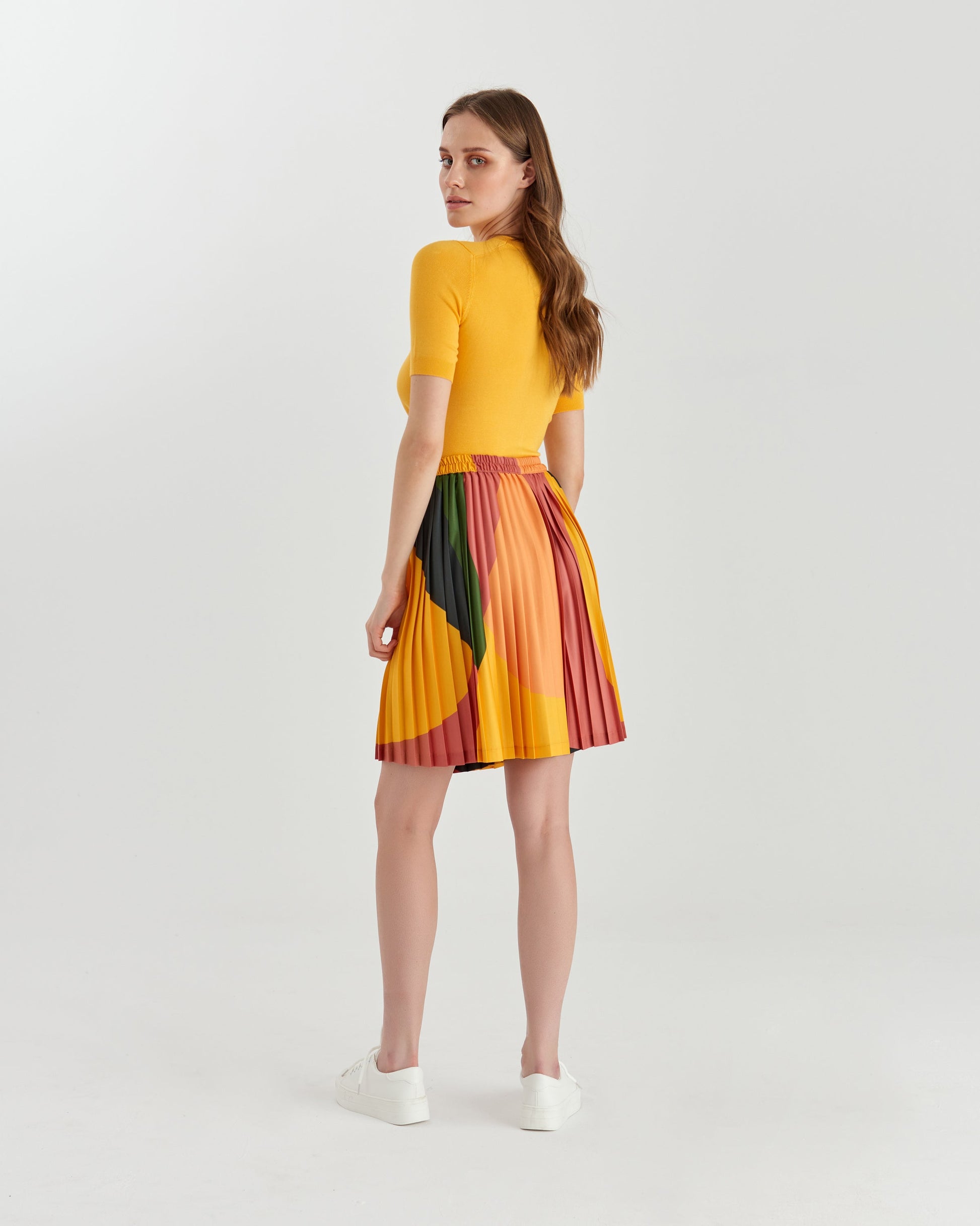 Pleated trousers with extremely wide and loose legs that form a skirt.